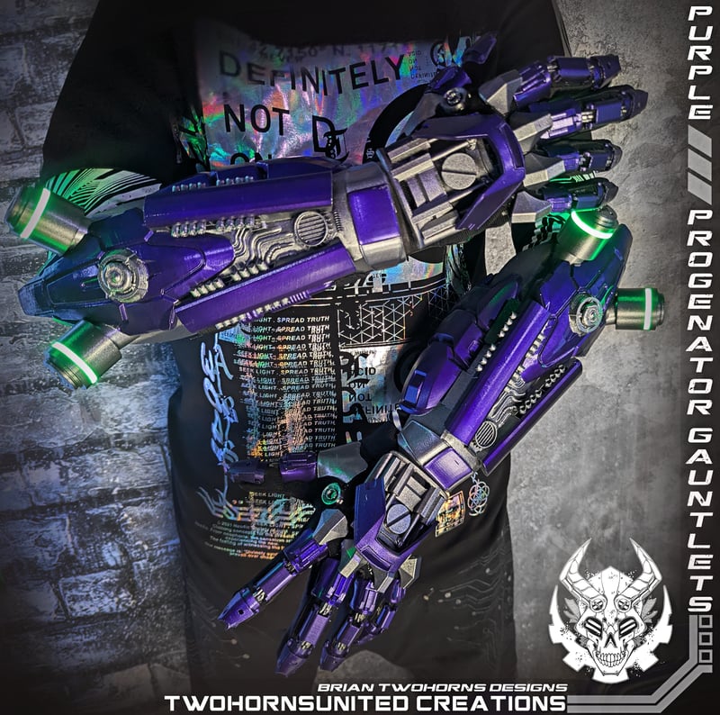 Progenitor purple SINGLE arm augmentation - Cyberpunk steampunk light up LED gauntlets